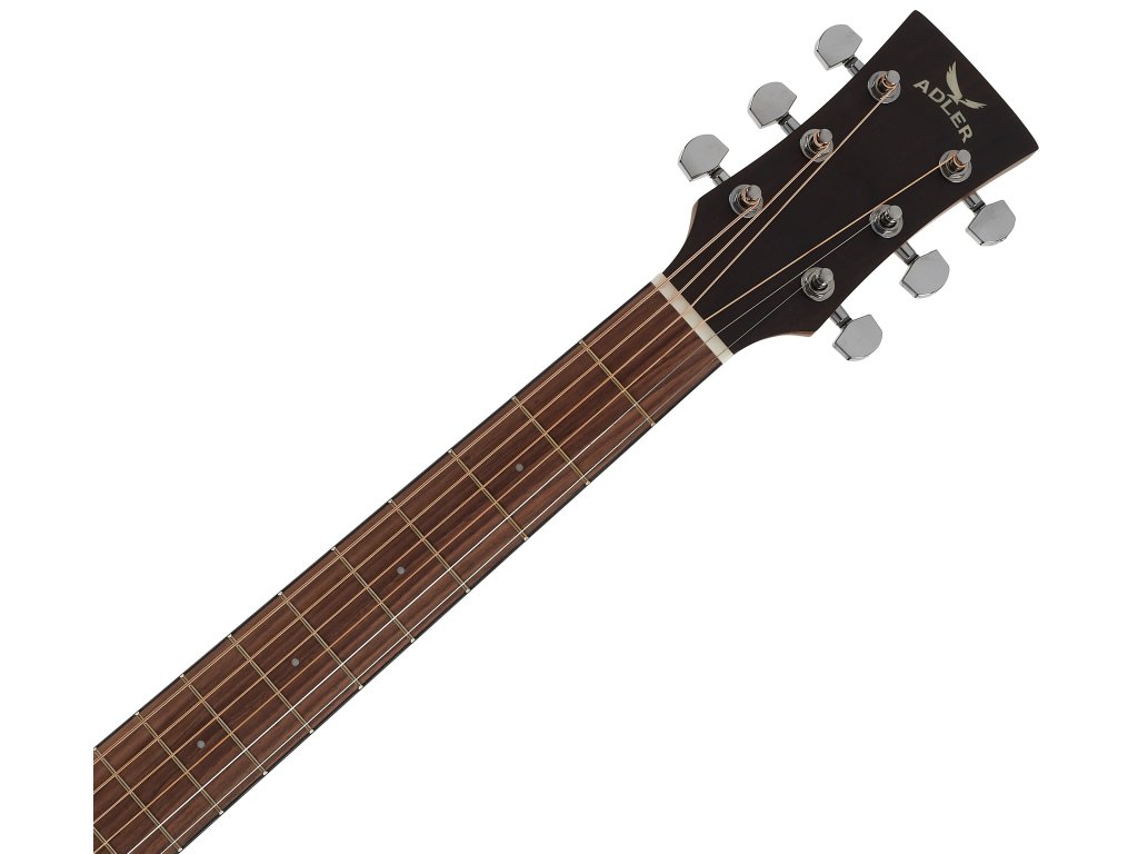Elektroakustická kytara DE10-SM značky Adler Guitars je nástroj s velkým rezonantním tělem typu Dreadnought. Přední deska kytary je zhotovena z masivu smrku Sitka, zadní deska a luby jsou vyrobeny z vrstveného mahagonu. K mahagonovému krku je přilepen hmatník ze dřeva pau ferro. Orientaci na hmatníku usnadňují poziční tečky z imitace perleti.