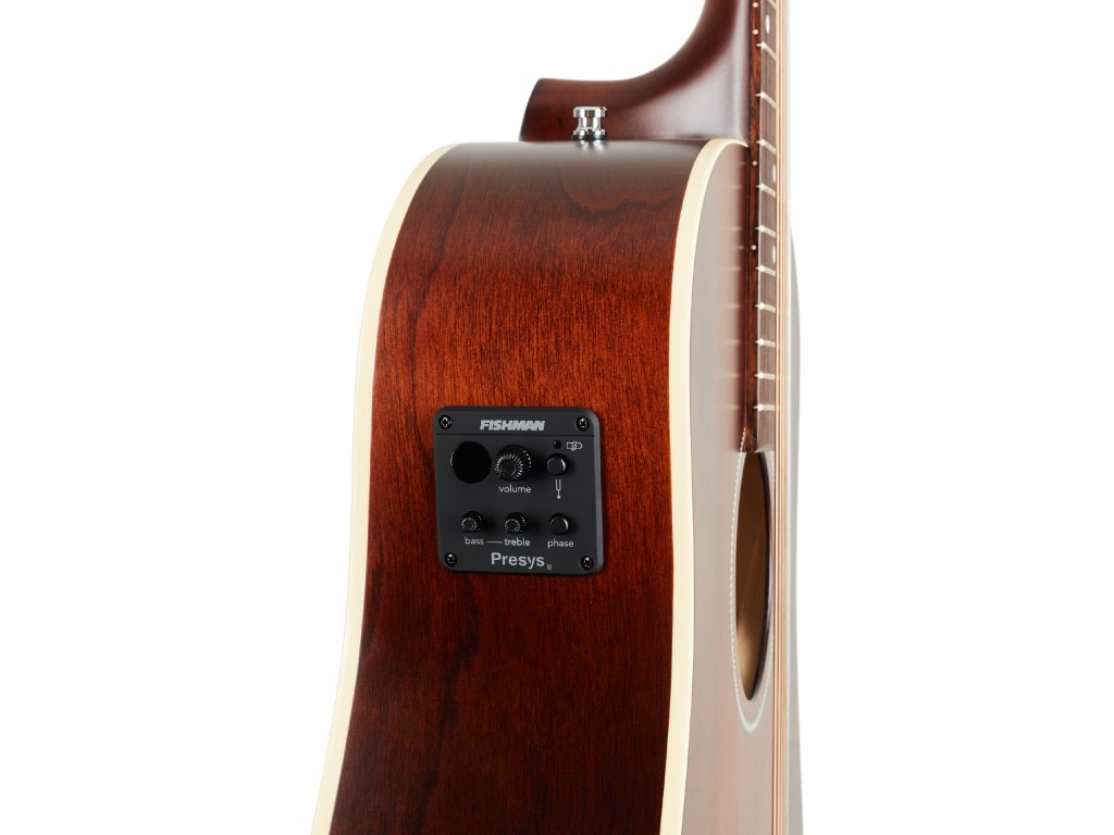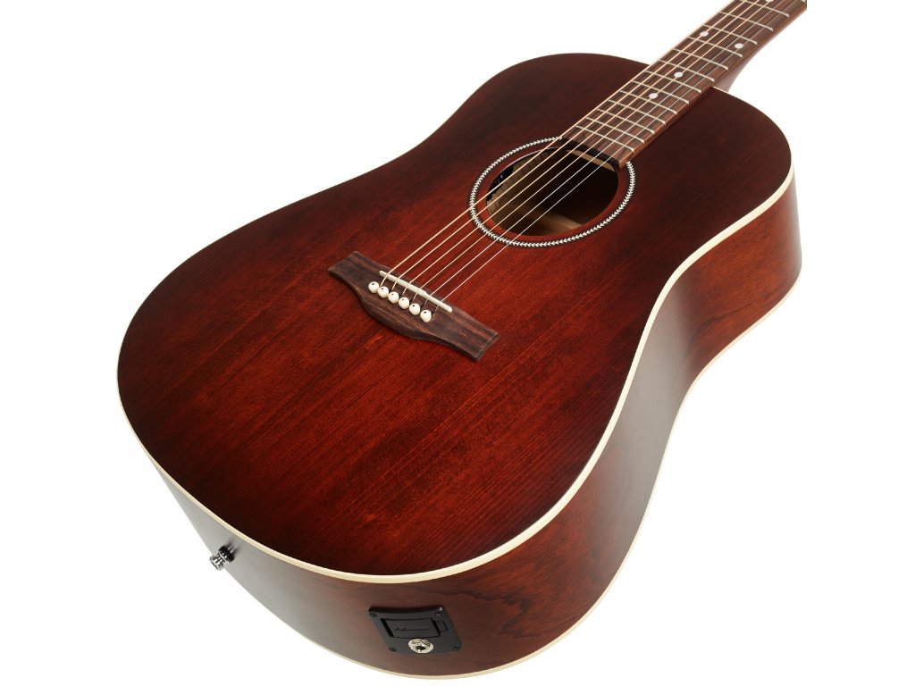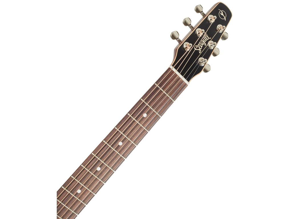 Možnost ozvučení nabízí podkobylkový piezo snímač Fishman Sonicore a předzesilovač Fishman Presys II s ovladačem hlasitosti, dvoupásmovým ekvalizérem, tlačítkem Phase pro potlačení efektu zpětné vazby a zabudovanou ladičkou. Struny jsou uchyceny v chromovaných ladících mechanikách a palisandrové kobylce. Pěkné zpracování podtrhuje pololesklý finiš topu v provedení Burnt Umber, rozeta se vzorem rybí kosti, oboustranná obvodová lemovka těla a firemní logo na typické hlavici kytar Seagull.