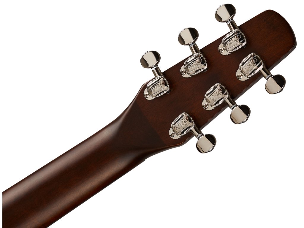 Stabilitu ladění zaručují kvalitní uzavřené mechaniky. Stylový design nástroje podtrhuje pickguard z imitace želvoviny, zdobná rozeta, tmavá lemovka a logo na hlavici kytary.