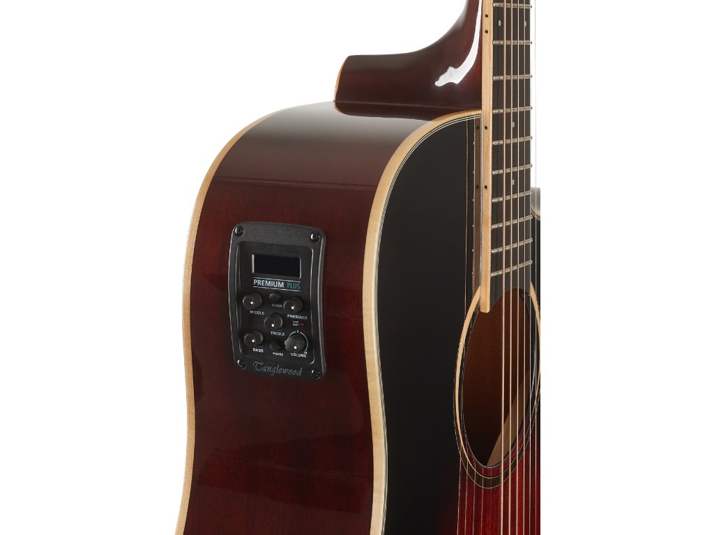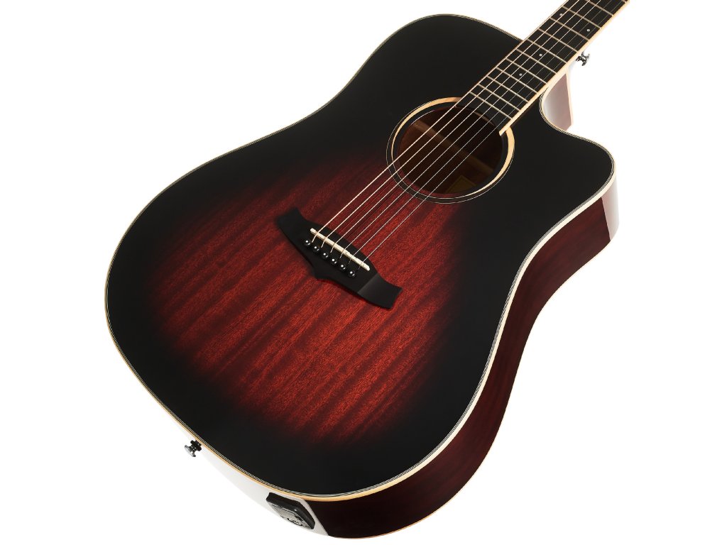 Elektroakustická kytara typu Dreadnought TW5CEAVB nabízí tělo zhotovené z mahagonu - přední desku z masivu, zadní desku a luby z vrstveného mahagonu. Ke krku ze dřeva nato, označovaného jako “Eastern Mahogany”, je přilepen hmatník z moderního kompozitního materiálu osazený dvaceti pražci. Dohmat na vyšších polohách hmatníku usnadňuje praktický spodní výřez těla.