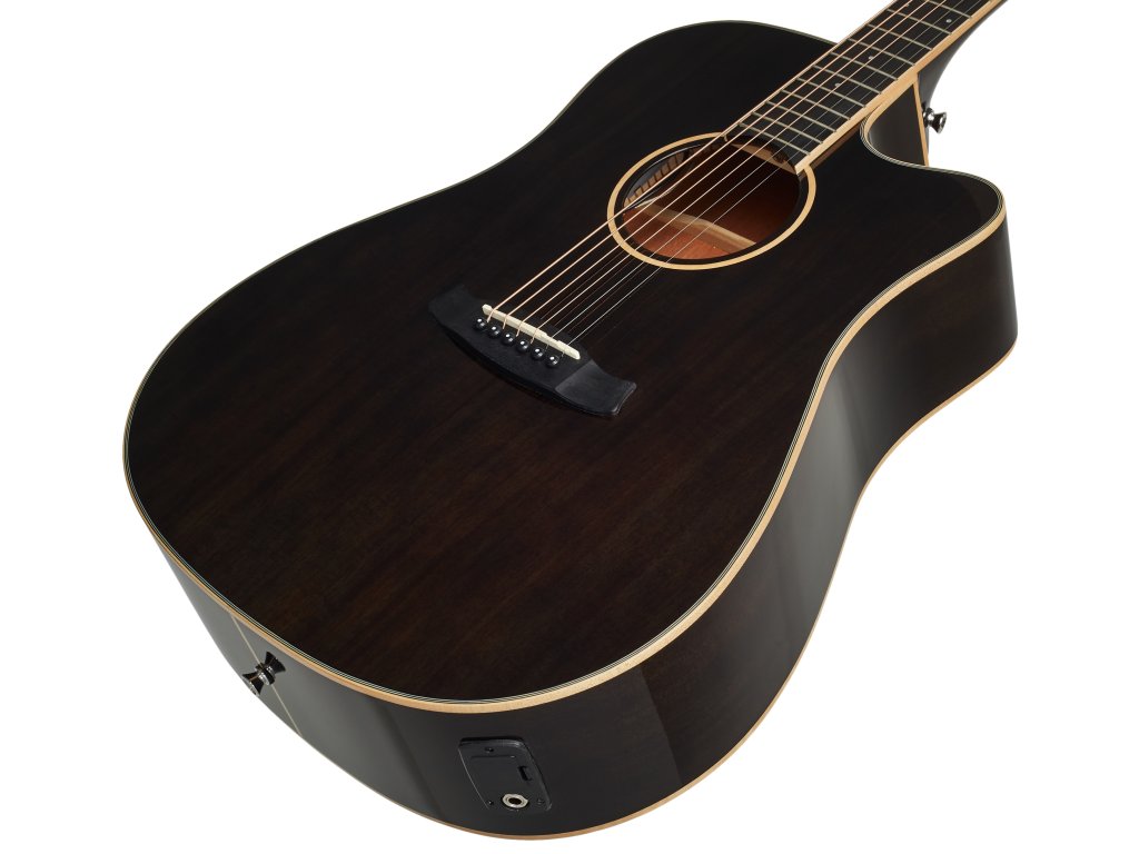 Britská značka Tanglewood představuje cenově dostupnější akustické kytary v retro i moderních designech. TW5 CE BS je elektroakustická kytara s velkým rezonantním tělem typu Dreadnought z řady Winterleaf.