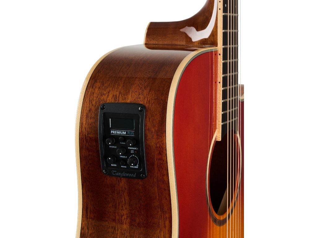 Možnost ozvučení nabízí firemní preamp TW Premium Plus s čtyřpásmovým ekvalizérem, funkcí Phase a integrovanou ladičkou. Struny jsou přes nultý a sedlový pražec z materiálu NuBone uchyceny v chromovaných die-cast mechanikách a kobylce z kompozitu. Pěkné zpracování podtrhuje oboustranná javorová lemovka těla, perleťové poziční tečky na hmatníku, středový proužek na zadní desce a lesklá barevná úprava přední desky Cherry Sunburst Gloss.