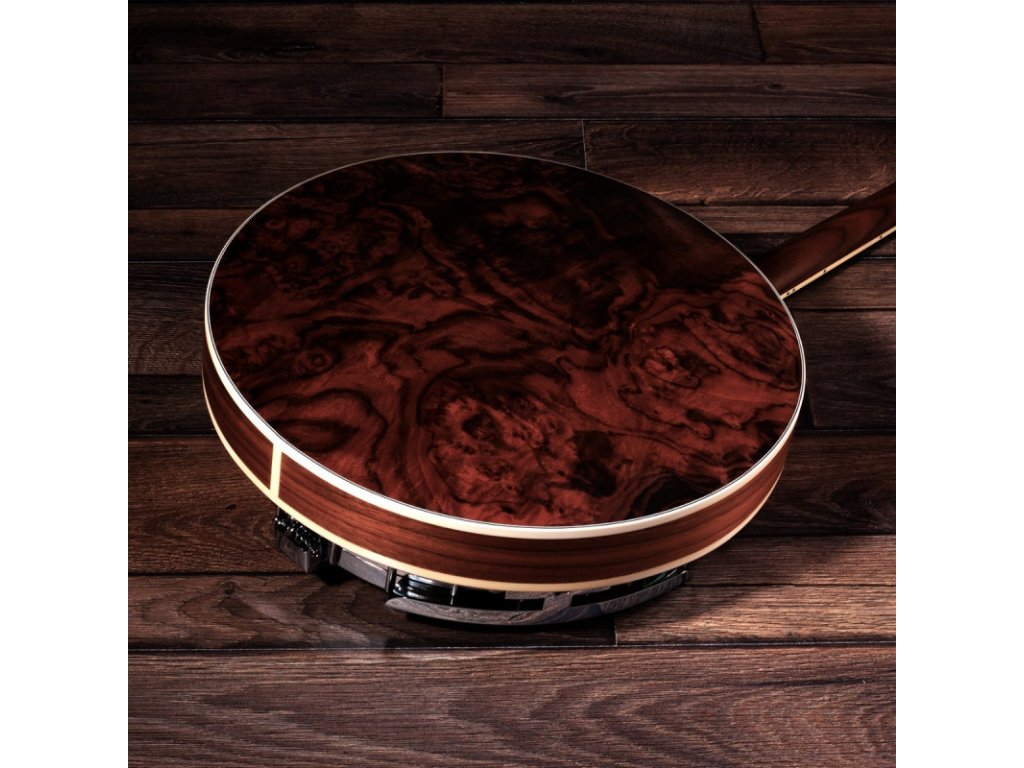 Díky nádherně tvarovanému burl ořechovému rezonátoru s okouzlujícím mramorovanou dřevokresbou v kombinaci s korpusem a krkem rovněž z ořechu bude banjo Empress skutečně obracet hlavy. Celkově můžete očekávat vynikající hloubku celkového zvuku, spárovanou s jasnou a artikulovanou odezvou, která odměňuje zkoumání jeho možností a podporuje širokou škálu herních stylů.
