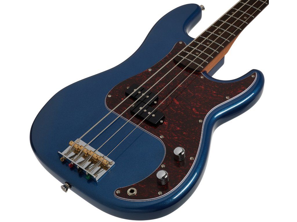 O zvuk baskytary se stará PB split-coil. Kontury zvuku upravíte pomocí ovladačů hlasitosti a tónové clony. Struny jsou uchyceny v chromovaných ladicích mechanikách ve vintage stylu a pevné kobylce. Stylové zpracování podtrhuje pickguard z imitace želvoviny a firemní logo na hlavici.