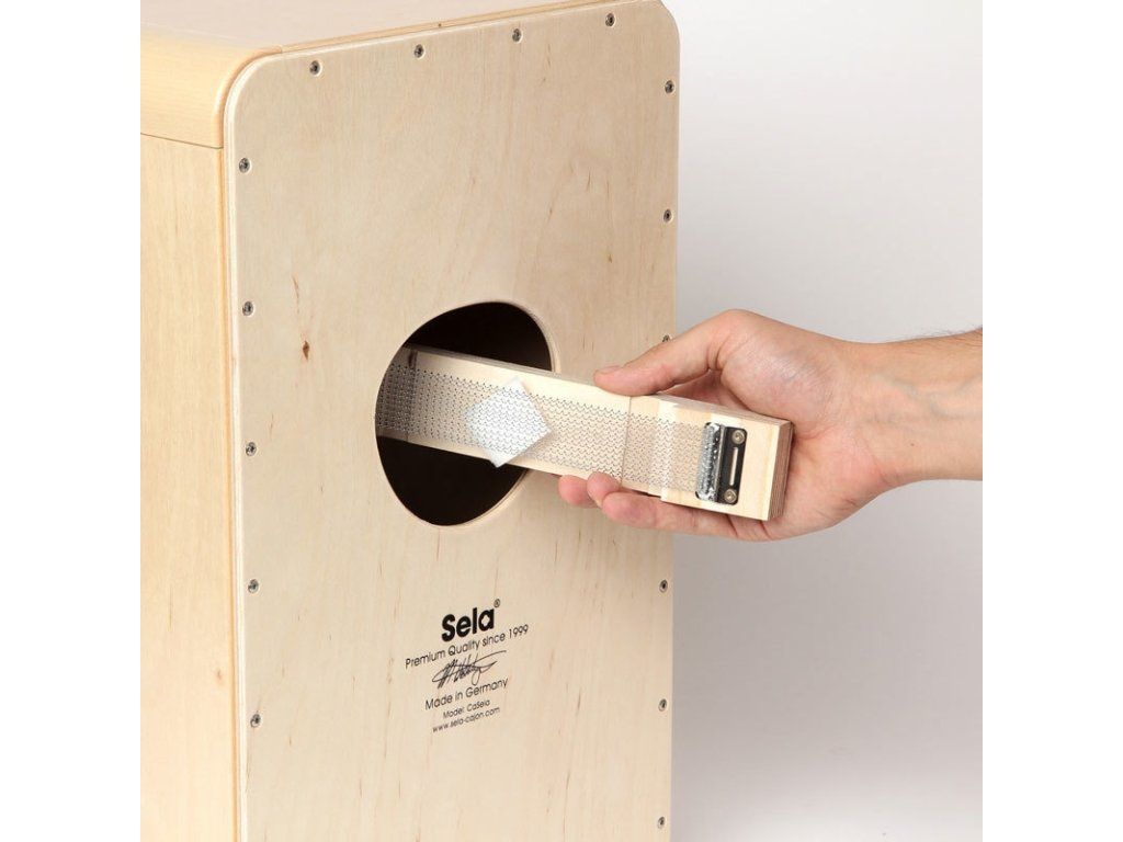 Horní část hrací desky obsahuje speciální struník, který posluchači navodí pocit klasického snare bubínku. Tento intuitivní snare systém můžete snadno vyjmout, čímž získáte zvuk tradičního cajonu. CaSela má dále individuálně nastavitelné rohy, takže kromě ostrých výšek můžete také docílit i velmi širokého spektra basových frekvencí.