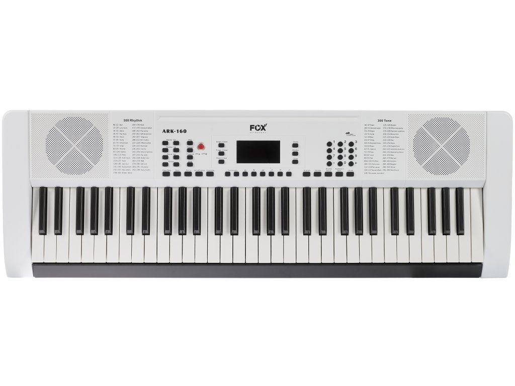FOX 160 nabízí 61 kláves standardní velikosti, 128 zvuků a 128 automatických doprovodů. Nechybí ani pokročilé funkce jako Split (rozdělení klaviatury pro hru na dva nástroje zároveň), Dual Voice (vrstvení zvuků), nebo nastavení Sustainu (dozvuku) a Vibrata. Klaviaturu lze rovněž transponovat, což ocení jak začátečníci, tak pokročilí hráči. Nechybí možnost hraní akordů jedním prstem, funkce Record pro záznam vašich pokusů nebo metronom a výukový systém. Ke klávesám lze připojit mikrofon.