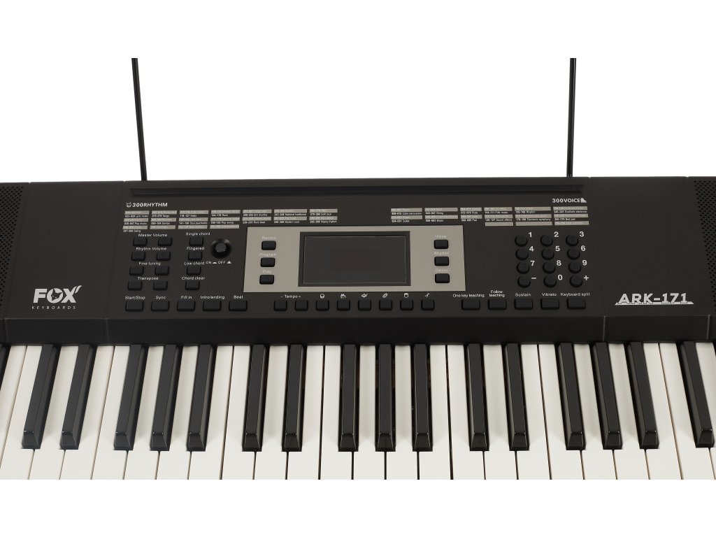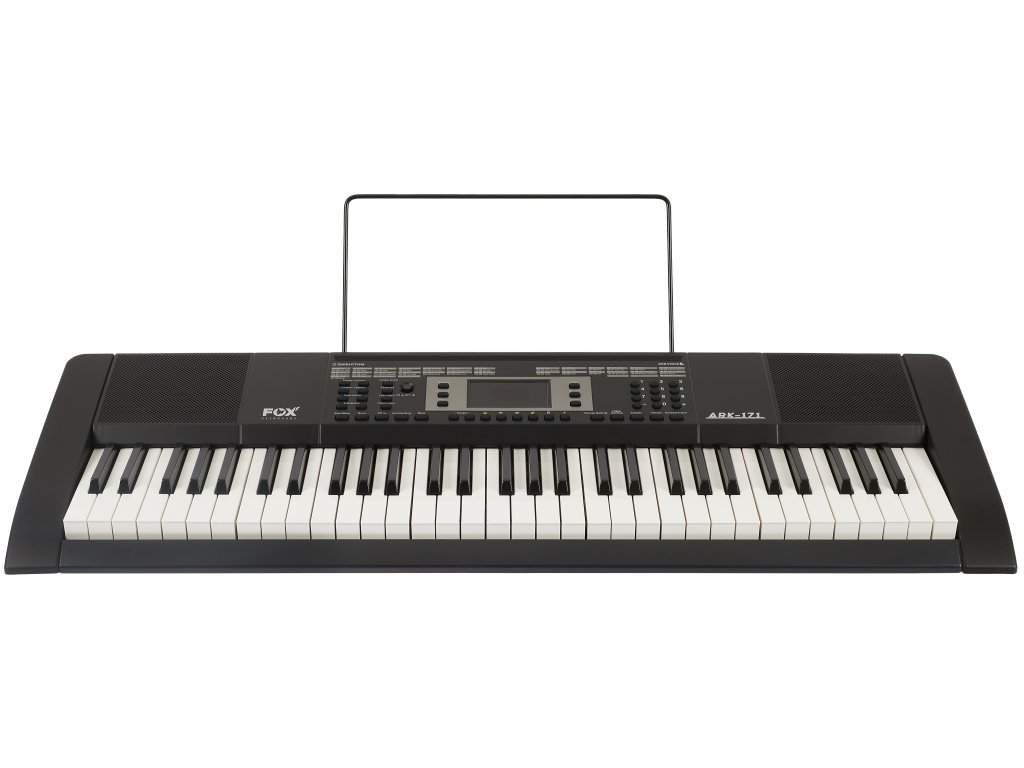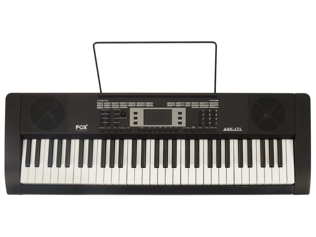 FOX Keyboards ARK-171 je multifunkční keyboard se 61 standardními klávesami, mechanikou bez dynamiky úhozu a centrálním LED displejem.