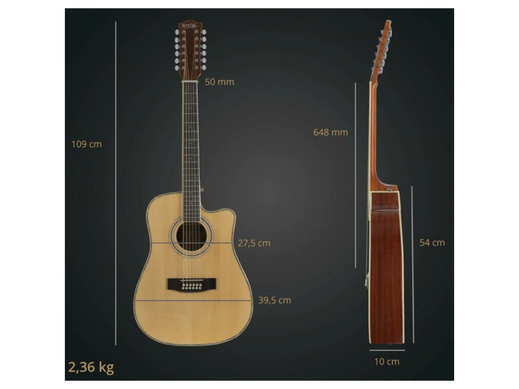 Rocktile WSD12-50C se vyznačuje plným, třpytivým zvukem. 12 strun generuje přirozené alikvotní tóny a široký, objemný tón, který je ideální pro zpěváky a skladatele, doprovod nebo studiovou práci. Díky snadné hratelnosti zůstává pocit ze hry pohodlný a přesný.