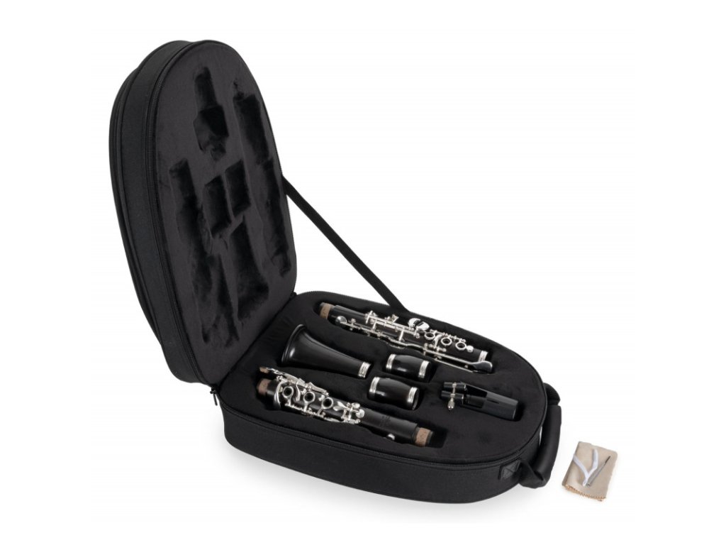 Dětský klarinet s německým prstokladem v Bb ladění s klapkami. Mechanika vhodná pro děti, tělo z přírodní grenadilly, součástí je i hubičky a pouzdro. Dětský klarinet BK-20/16 vyrobený z grenadilly disponuje teplým "klarinetovým" zvukem díky dřevěnému tělu má velmi dobrou odezvu, intonace i zpracování. Díky nízké hmotnosti je tento model velmi vhodný i pro hráče s malýma rukama nebo omezenou pohyblivostí. Součástí je také hubička "W5A" s otvorem 0,90 mm a délkou 20,0 mm. Dále u nástroje najdete plátek Vandoren 1,5 a ligaturu. Celé balení je dodáváno v lehkém a pevném pouzdře, které je vybaveno 2 vnějšími kapsami a popruhy na záda.