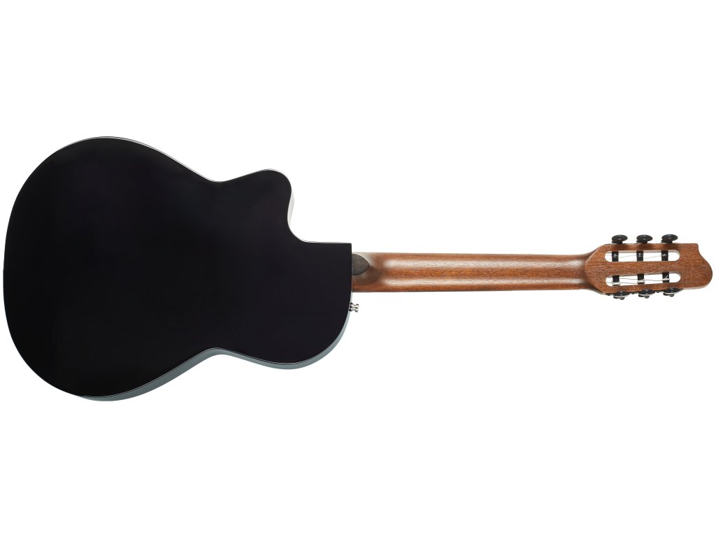 Arena Pro Ltd CW Onyx Black EQ with Bag je polomasivní kytara s přední deskou z masivu cedru a zadní deskou a luby zhotovenými z překližované kanadské plané třešně. K mahagonovému krku je přilepen ebenový hmatník osazený devatenácti pražci. Dobrý dohmat na nejvyšších polohách hmatníku usnadňuje hluboký zaoblený spodní výřez těla.