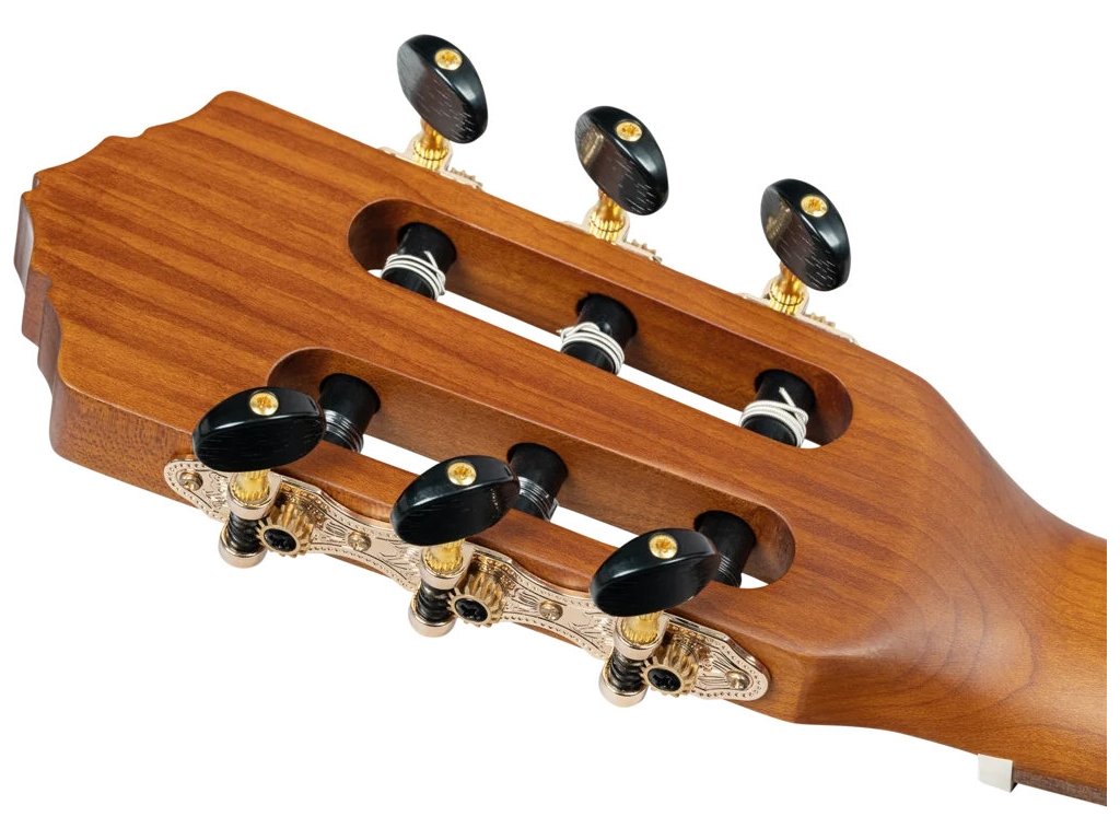 Možnost ozvučení nabízí aktivní elektronika Ortega Magus Pro G s třípásmovým ekvalizérem, invertorem fáze a integrovanou ladičkou. Struny jsou uchyceny v klasických ladicích mechanikách a kobylce z jatoby. Pěkné zpracování podtrhuje matná úprava přední desky, která perfektně ladí s nazlátlou barvou pečeného topu, ořechová obvodová lemovka těla, rozeta a firemní logo na hlavici nástroje.