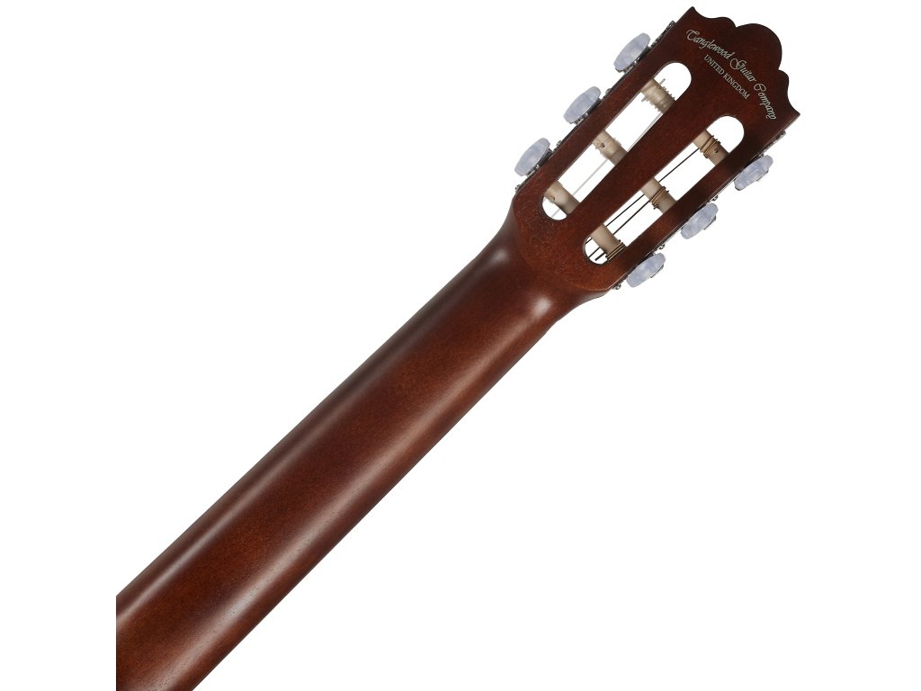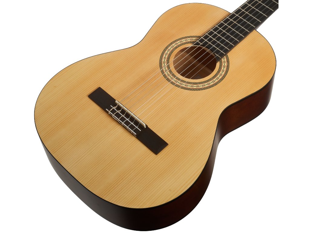 Struny jsou uchyceny v chromovaných klasických mechanikách a palisandrové kobylce. Stylové zpracování podtrhují tradiční prvky v podobě rozety a lemovky.