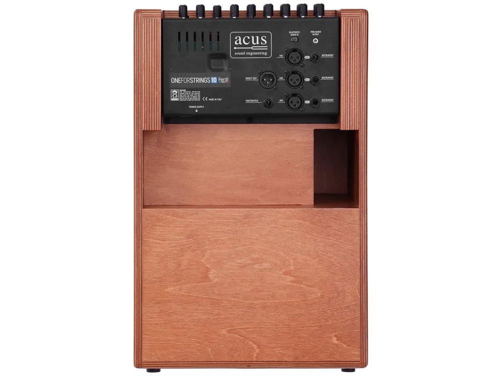 Acus OneForStrings 10 Ferdi Wood je tříkanálové akustické kombo z řady Ferdi s novým rozhraním/systémem Ferdi-UXLogic, výkonem 250 wattů a dvěma vstupy (mikrofonním a nástrojovým) na každém kanálu. Každý kanál má k dispozici samostatný třípásmový ekvalizér, ovladač hlasitosti, gainu (-12 až +15 dB) a úrovně zvoleného zabudovaného efektu. První kanál navíc nabízí sekci kompresoru a třípolohový přepínač, který mění charakter EQ podle zvoleného typu nástroje (Flat - lineární odezva, stejné EQ jako kanály 2 a 3, Bass - pro nástroje s bohatými basy jako představuje akustická baskytara nebo kontrabas, Jazz - ideální pro lubové/jazzové kytary).