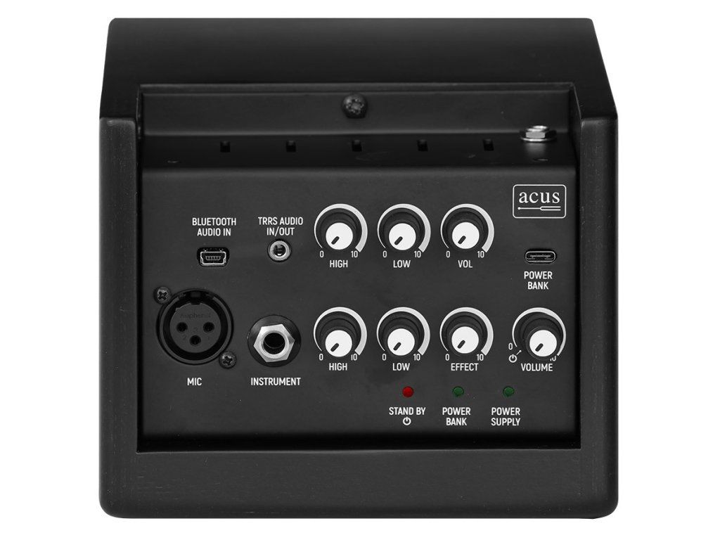 Acus OneForStrings 4 Ferdi Black je nejkompaktnějším akustickým kombem z řady Ferdi s novým rozhraním/systémem Ferdi-UXLogic. Jedná se o kompaktní lehké kombo pro akustické nástroje s maximálním výkonem 50 wattů, jedním kanálem se dvěma vstupy (mikrofonním a linkovým), ovladačem hlasitosti, dvoupásmovým ekvalizérem, ovladačem zabudovaného efektu reverb a Master Volume. Horní řada ovladačů (dvoupásmový ekvalizér a hlasitost) přísluší k Aux kanálu a konektorům Bluetooth audio in a TRRS audio in/out. Acus OneForStrings 4 vám tak umožní poslouchat a hrát do vaší oblíbené hudby z telefonu, MP3 přehrávače nebo notebooku, nahrávat a živě streamovat na populárních sociálních platformách.