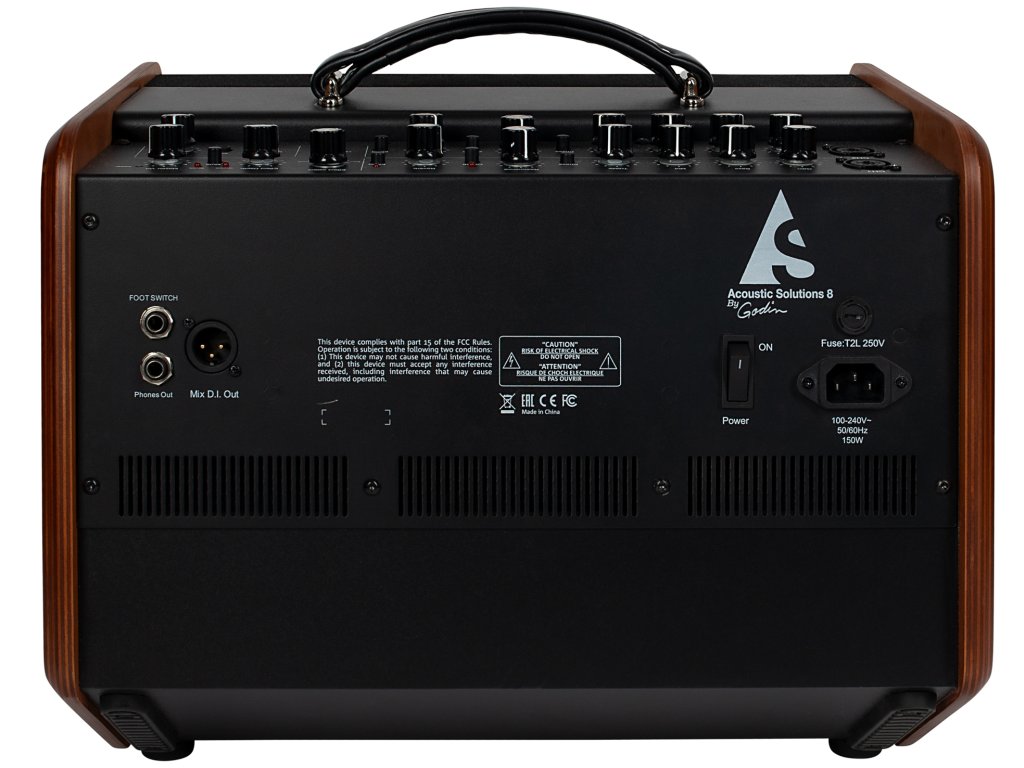 Acoustic Solutions ASG-8 je dvoukanálové kombo pro akustické nástroje určené všem písničkářů a hráčům na akustické kytary a další akustické nástroje (nejen strunné). Kombo je poměrně lehké (váží 11,7 kg) a snadno přenosné, přes to nabízí slušný výkon 120 wattů osmipalcového reproduktoru (woofer) a palcového tweeteru, takže s přehledem obstojí v menších i větších klubových prostorech. Díky designu lze navíc naklopit a využít např. jako pódiový odposlech (signál můžete přes XLR DI výstup poslat přímo zvukaři).