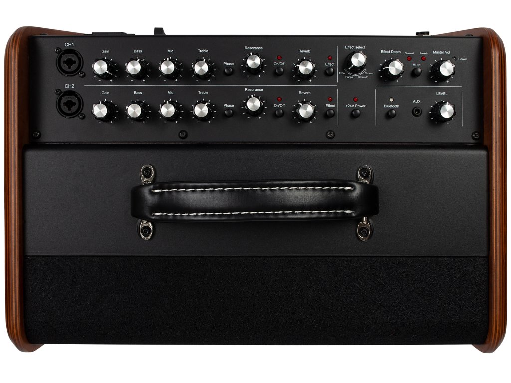 Kombo nabízí dva kombinované XLR/TRS vstupy pro nástroje či mikrofony (díky možnosti fantomového napájení i kondenzátorové), samostatné ovladače obou kanálů (Gain, Resonance, třípásmový ekvalizér), zabudovaný efektový procesor (efekt Reverb doplněným jedním z volitelných efektů Echo, Flange, Chorus 1, Chorus 2), možnost přehrávání doprovodných skladeb z vašeho telefonu či laptopu díky kompatibilitě s Bluetooth (Bluetooth 4.0) nebo přes Aux In, výstup do sluchátek a vstup pro footswitch (není součástí balení). Užitečnou funkcí je i tlačítko Mute pro rychlou výměnu nástrojů bez otravných doprovodných lupanců.