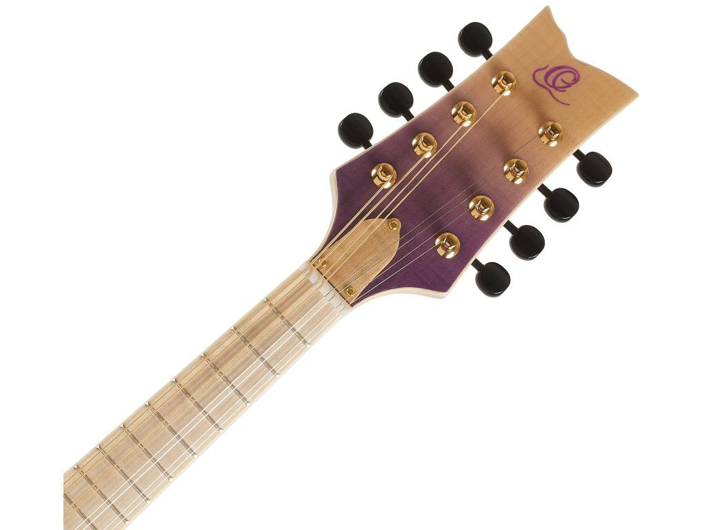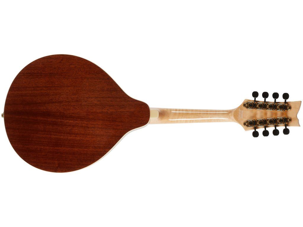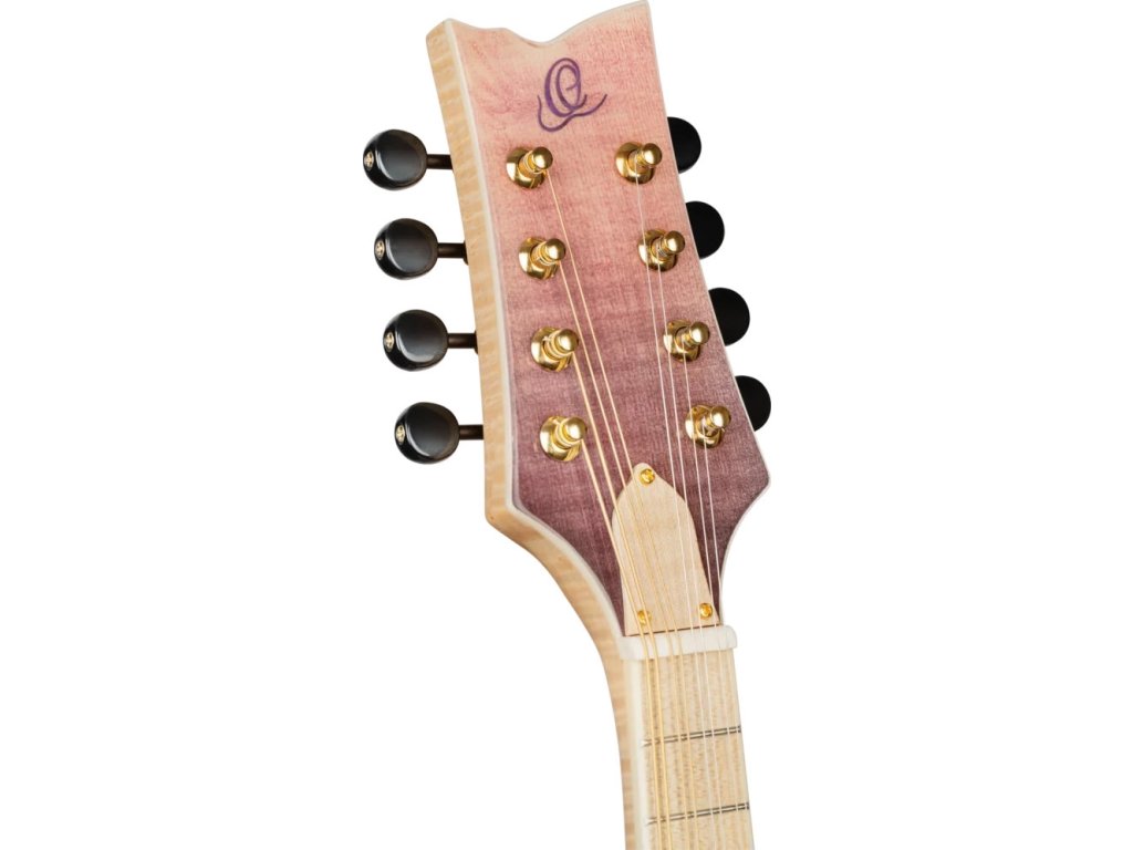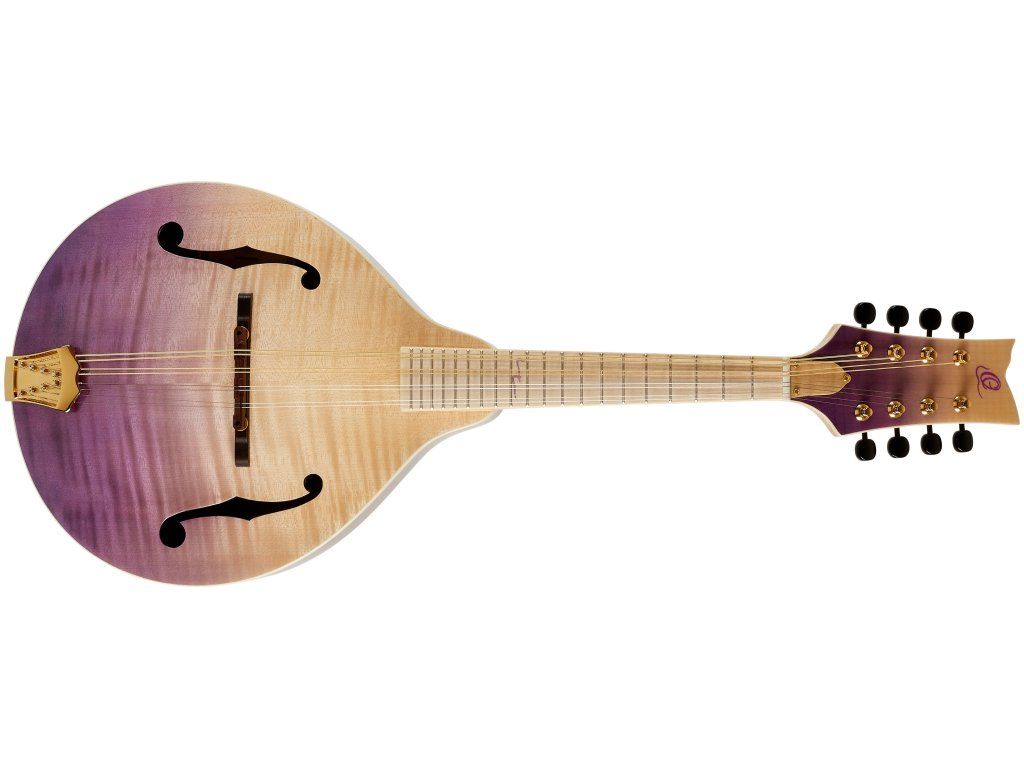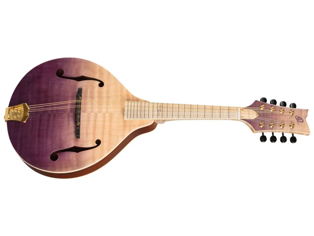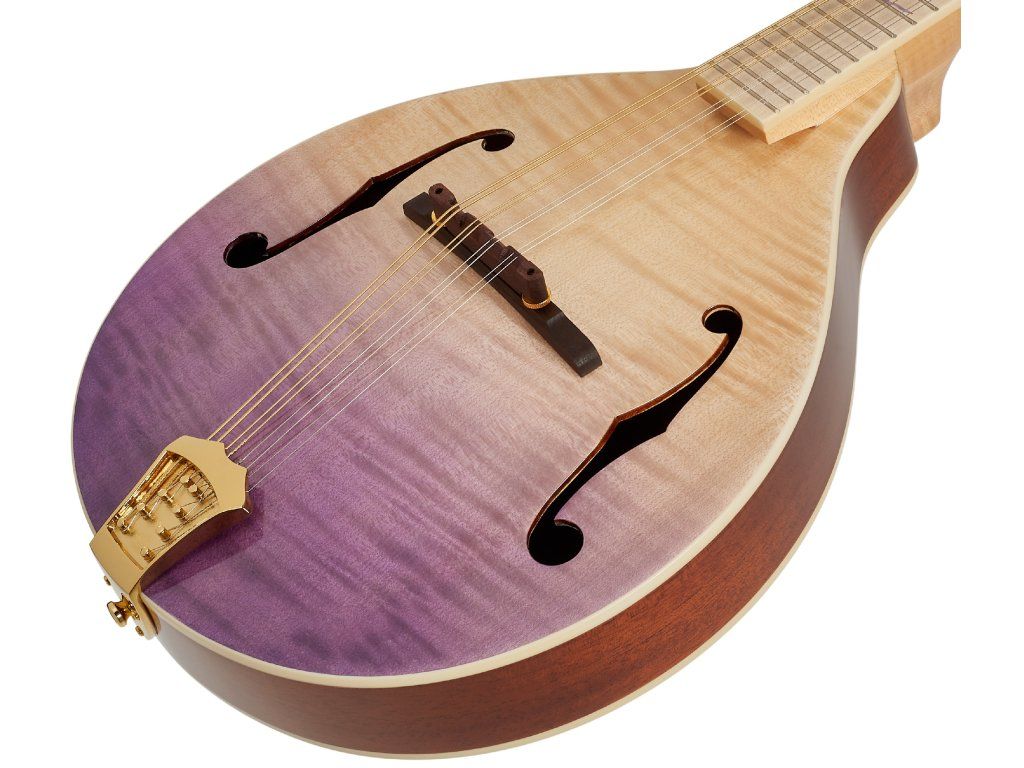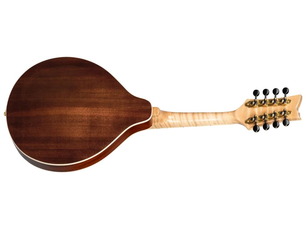 Třeba celomasivní A mandolínu RMA200PF z řady Americana Series. Přední desku nástroje z masivu fládrovaného javoru zdobí lesklá barevná úprava Transparent Purple Fade. Luby a zadní deska jsou vyrobeny z masivu mahagonu. Pěknou kresbu nabízí i krk a hmatník zhotovené z fládrovaného javoru.