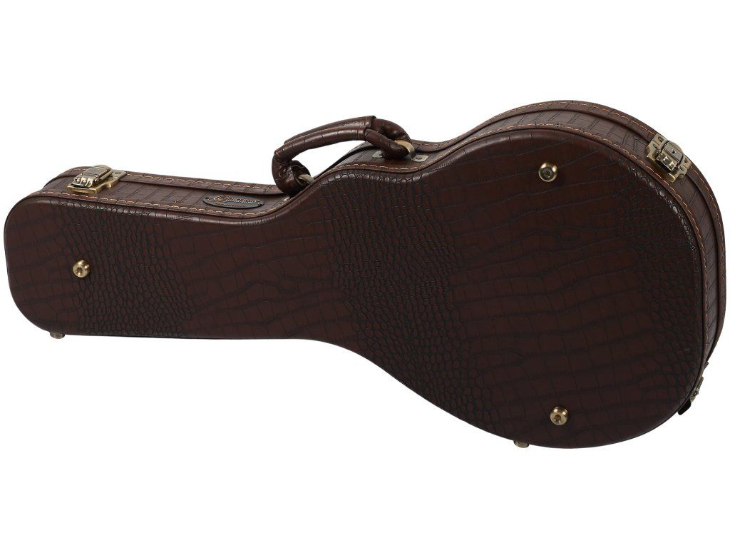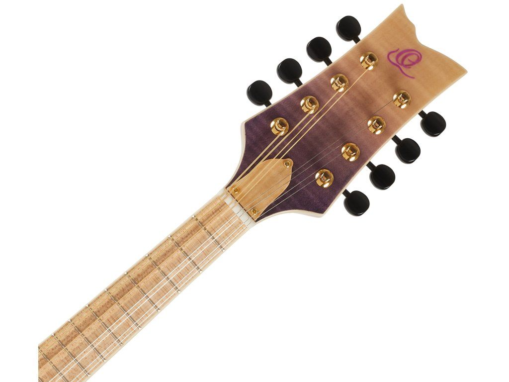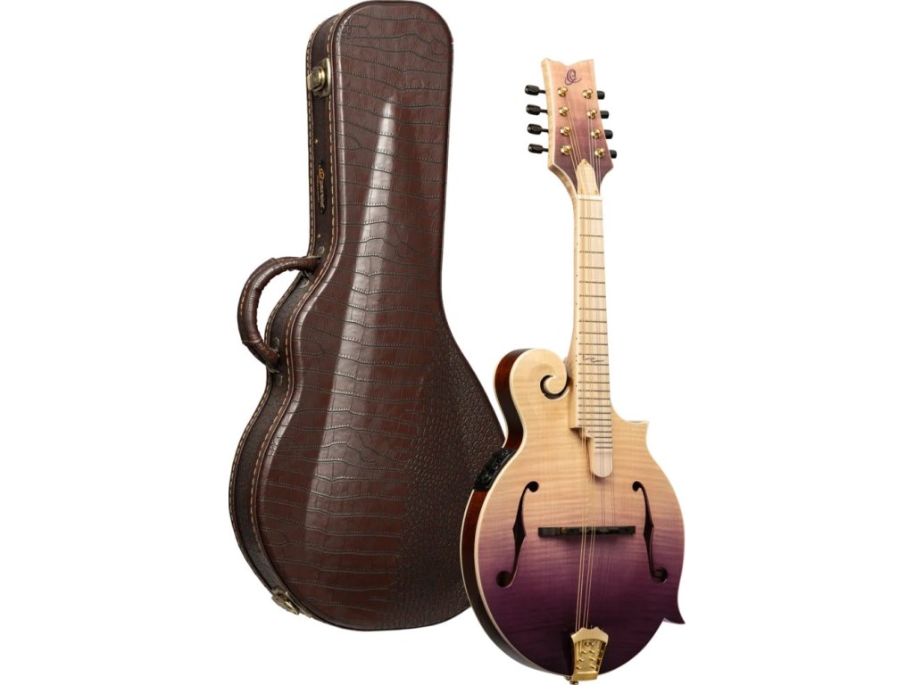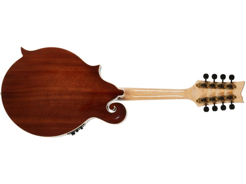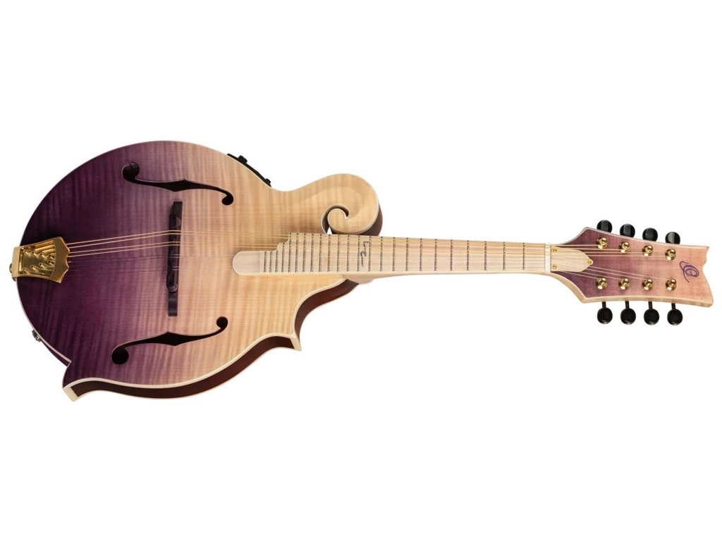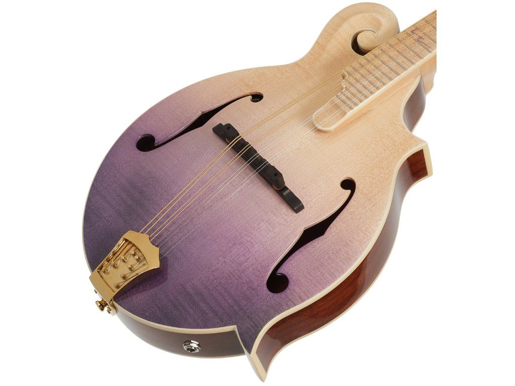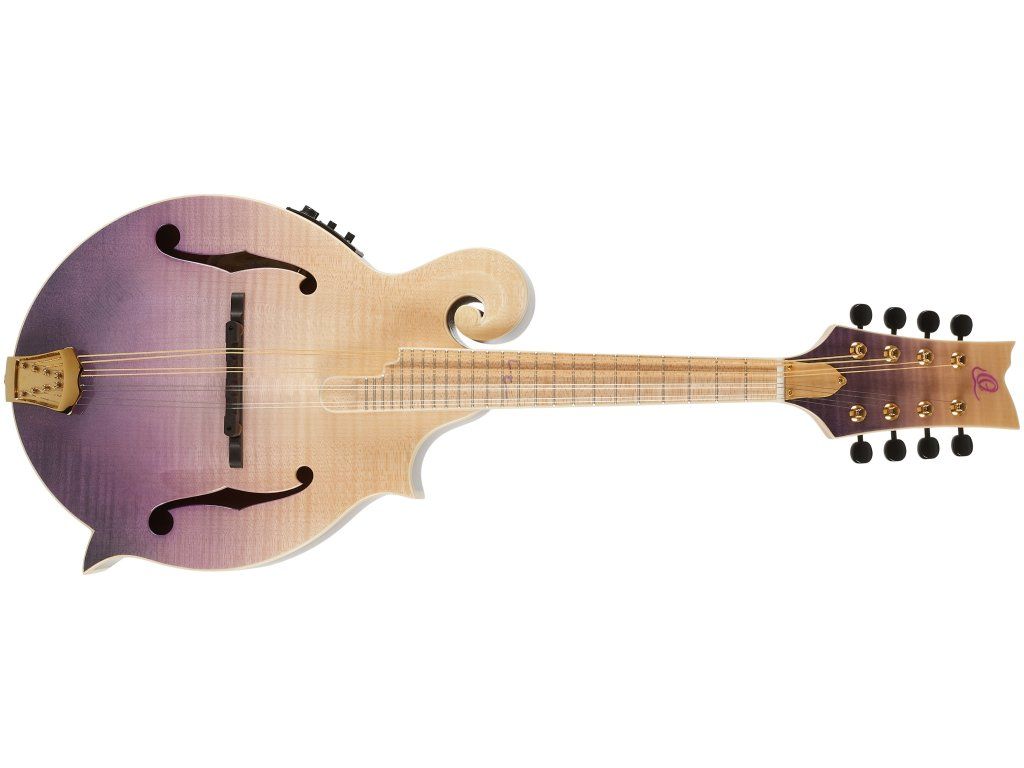 Třeba elektroakustickou celomasivní F mandolínu RMFE200PF z řady Americana Series. Přední desku nástroje z masivu fládrovaného javoru zdobí lesklá barevná úprava Transparent Purple Fade. Luby a zadní deska jsou vyrobeny z masivu mahagonu. Pěknou kresbu nabízí i krk a hmatník zhotovené z fládrovaného javoru.