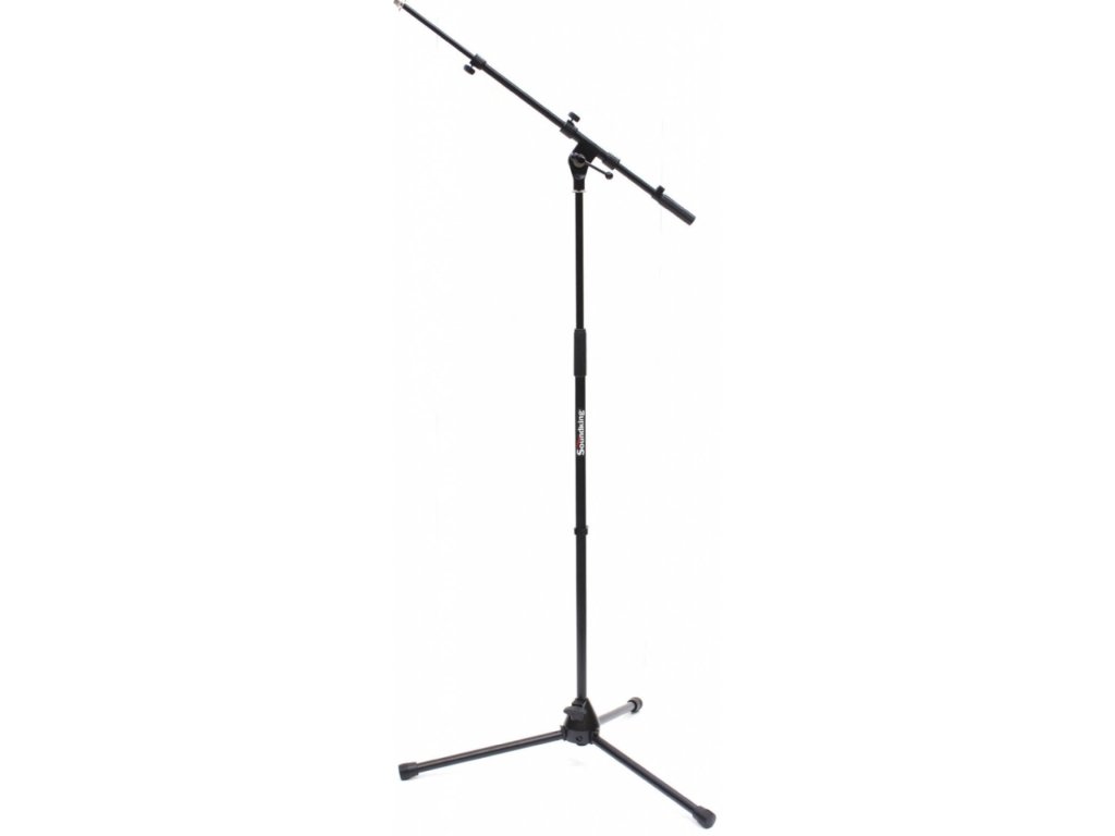 Ocelový mikrofonní šibenicový stojan s teleskopicým ramenem a sklopitelnými nohama. Výška 1000-1760mm, délka ramene 530-910mm, černá barva.