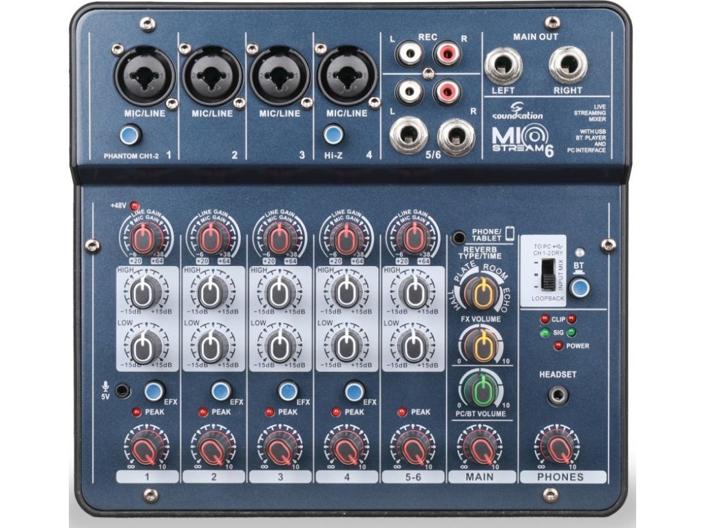 Soundsation MIOSTREAM6 je skvělou volbou, pokud hledáš streamovací mix s více mikrofonními vstupy a OTG konektivitou.