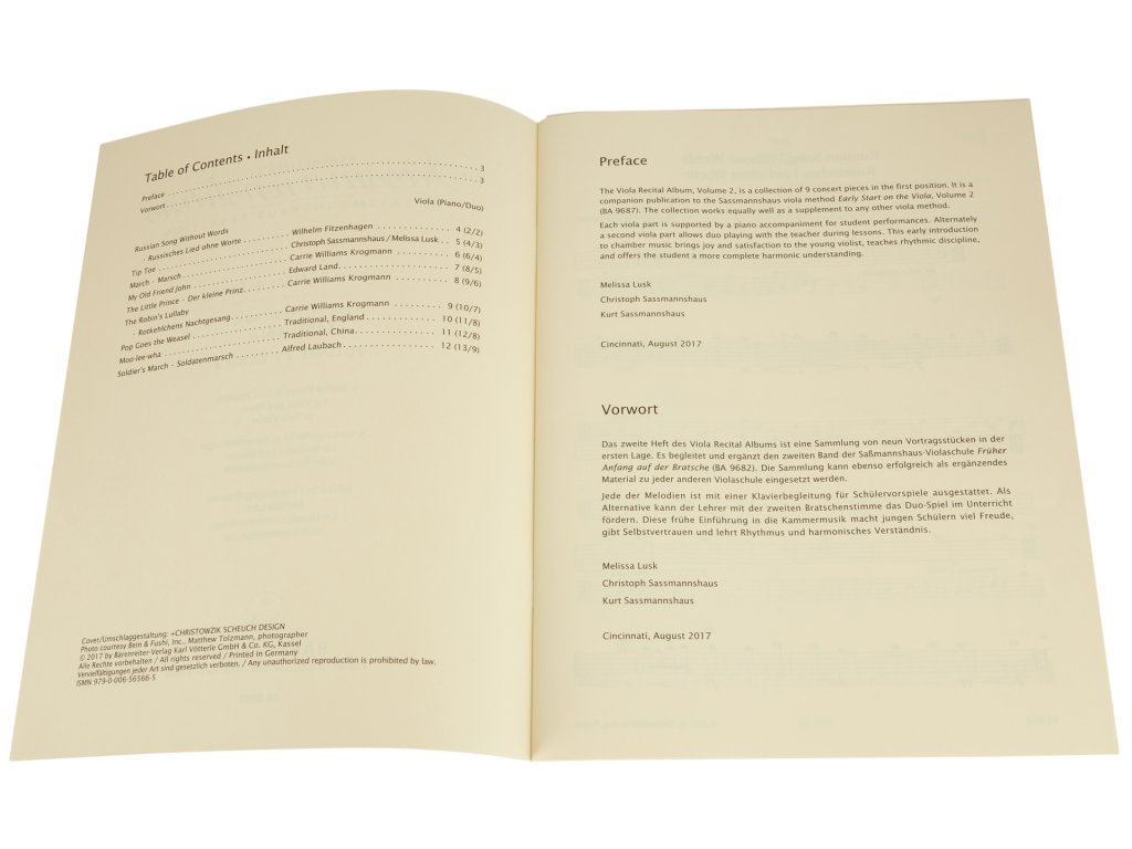 Devět skladeb druhého svazku Viola Recital Album představuje vítané zpestření výuky. Jednotlivé skladby jsou metodicky řazeny podle obtížnosti, ale do výuky je lze vkládat libovolně.