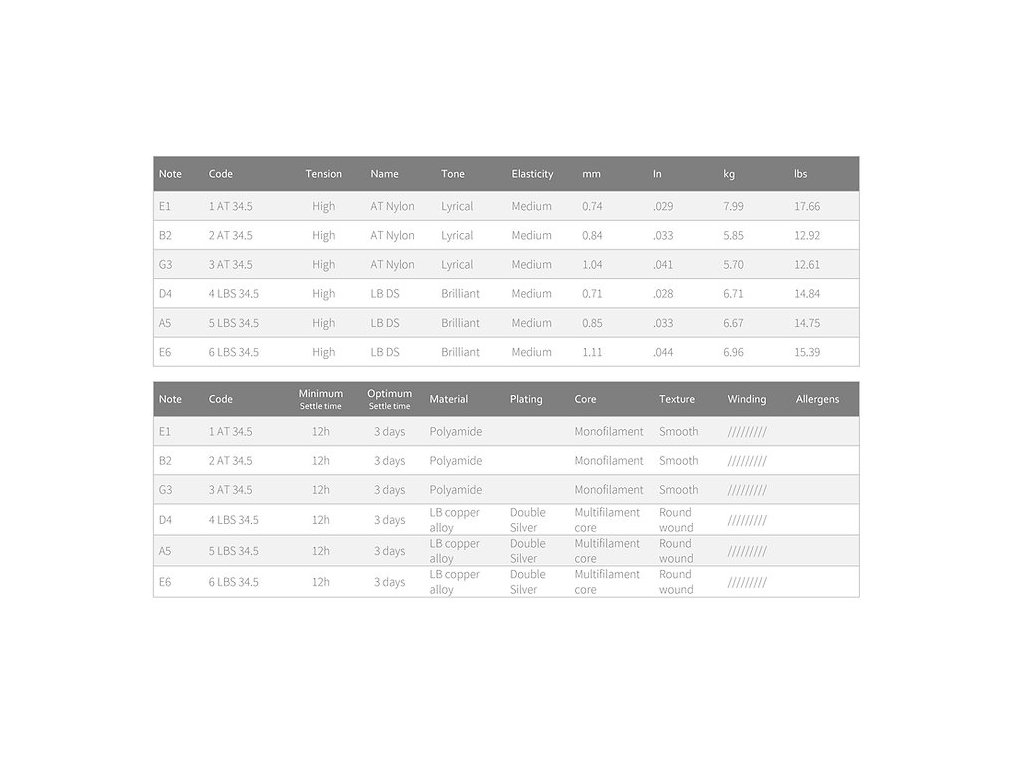 Basové struny z dvojitého stříbra LB Double Silver se pyšní brilantností, zatímco nevinuté struny z materiálu AT Nylon nabízí perfektně vyvážený tón, který balancuje na hranici mezi jemností nylonu a zvonivostí karbonu. Výsledkem je silný, ale jemný tón, který je kombinací průrazných basů a jemnějších vyšších frekvencí. Tento unikátní set strun nabízí kytaristům možnost přenášet do své hry výjimečný dynamický rozsah a emocionální hloubku.