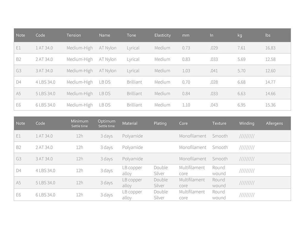 Basové struny z dvojitého stříbra LB Double Silver se pyšní brilantností, zatímco nevinuté struny z materiálu AT Nylon nabízí perfektně vyvážený tón, který balancuje na hranici mezi jemností nylonu a zvonivostí karbonu. Výsledkem je silný, ale jemný tón, který je kombinací průrazných basů a jemnějších vyšších frekvencí. Tento unikátní set strun nabízí kytaristům možnost přenášet do své hry výjimečný dynamický rozsah a emocionální hloubku.