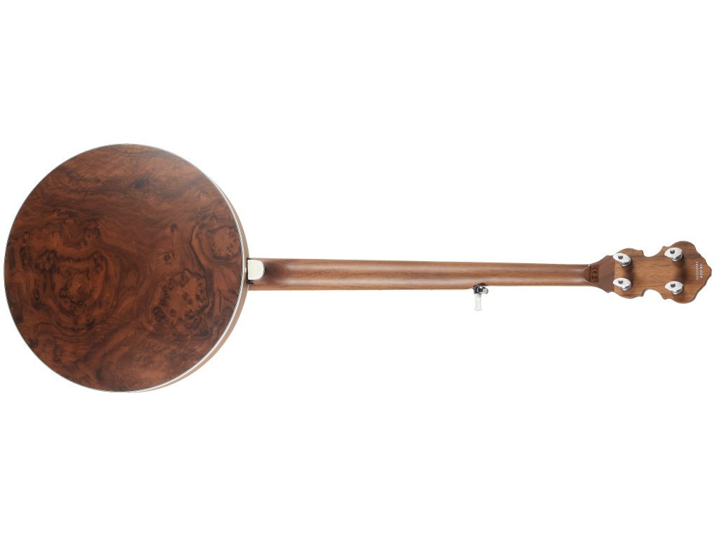 OBJ550W-SNT je pětistrunné banjo typu closed back, tj. s uzavřenou zadní deskou v podobě rezonátoru ze dřeva ořechu s parádní kresbou (burl walnut). Disponuje tone ringem zhotoveným z rolované mosazi, krkem ze dřeva ořechu, palisandrovým hmatníkem osazeným zdobnými intarziemi, chromovanou ramenní opěrkou zkrášlenou rytinami s firemní tematikou, plochou přírubou (flat flange), korpusem z překližovaného ořechu a k němu ráfkem přichycenou blánou značky Remo. Milovníky tradice potěší uchycení strun v chromovaných ladících mechanikách typu Geared, které vypadají jako klasické mechaniky typu Friction, ale poskytují stabilnější a přesnější ladění.