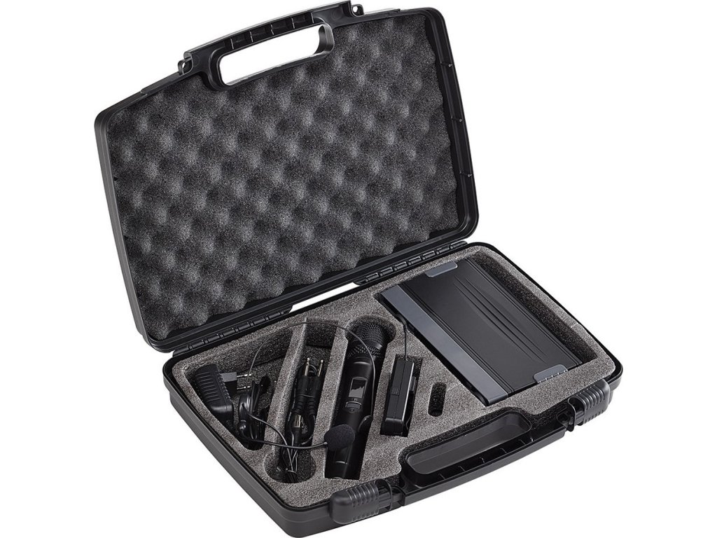 Součástí balení je ruční mikrofon, náhlavní mikrofon, přijímač, bodypack vysílač, adaptér, USB kabel, 6.3 mm jack kabel, baterie a kufřík. Zvlášť lze zakoupit montážní rackový hardware.