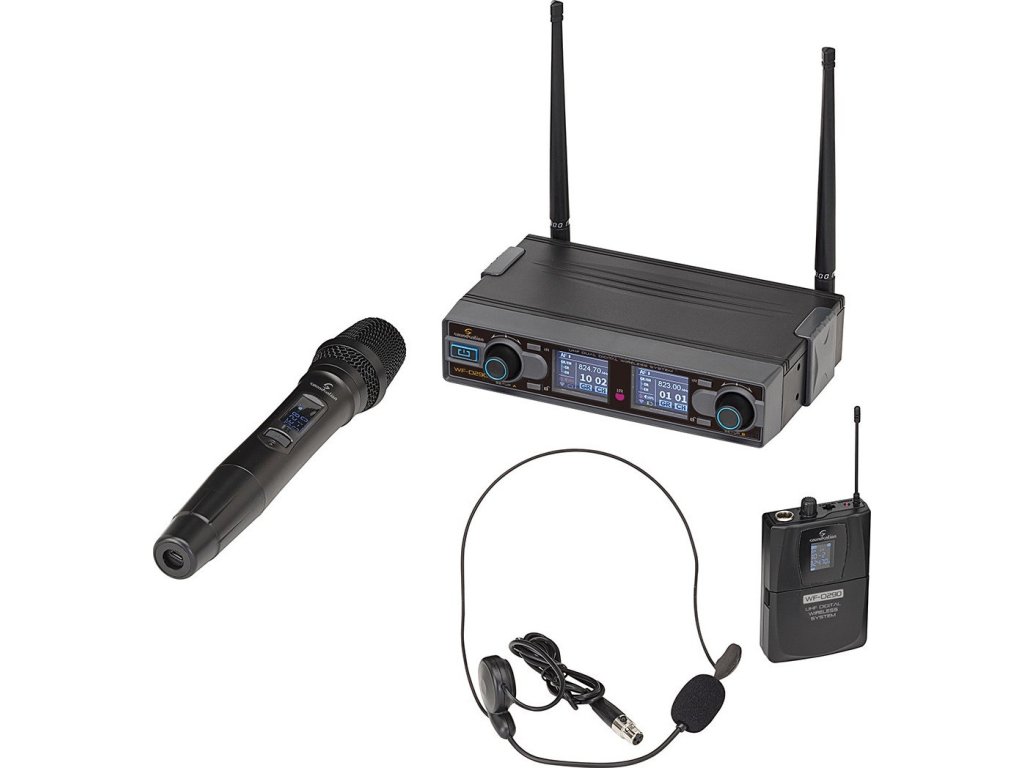 Duální bezdrátový set Soundsation WF-D290HP MKII obsahuje přijímač, dynamický mikrofon/vysílač, bodypack vysílač a náhlavní mikrofon. Jedná se o devadesátikanálový bezdrátový set s novou digitální přenosovou technologií, dosahem až 50 metrů a šifrováním audio dat, který nabízí v porovnání s analogovými UHF systémy výbornou audio kvalitu, nízkou latenci a maximální bezpečnost. 16-bitová digitální ID technologie zabraňuje rušení i na stejné frekvenci a umožňuje plynulou výměnu dat mezi vysílačem a přijímačem. Automatické skenování frekvencí vám umožní zvolit vhodnou frekvenci v libovolném prostředí.