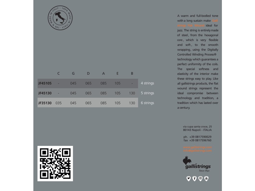 Struny pro baskytaru ze série Jazz Flat od renomovaného výrobce Galli Strings disponují šestihranným ocelovým jádrem a hlazeným vinutím z nerezové oceli. Díky tomu nabízejí vřelý a plný tón s dlouhým sustainem ideální pro jazzovou hru. Proces vinutí strun je digitálně kontrolován, což zajišťuje precizní navinutí ocelového drátu a stabilní intonaci. Galli Strings tak nabízí harmonické spojení tradice a moderních technologií, jehož výsledkem jsou špičkově zpracované struny, které vás osloví svou spolehlivostí a odolností.