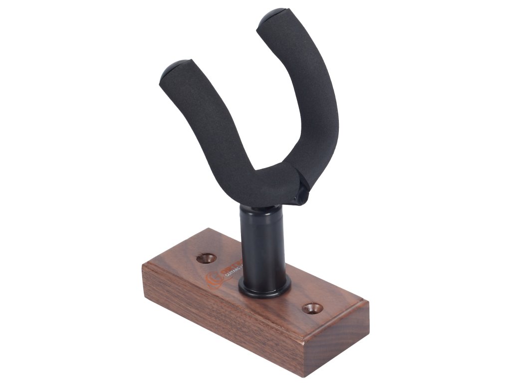 Spolehlivý a elegantní držák se základnou z ořechového dřeva. Uchycení nástroje zajišťuje ocelová vidlice s roztečí 4,5 cm a ochranným pěnovým potahem. Otočná vidlice se navíc sama přizpůsobí tvaru hlavy nástroje, takže je možné držák využívat u nástrojů s atypickou hlavou. Vhodné pro kytary i baskytary.