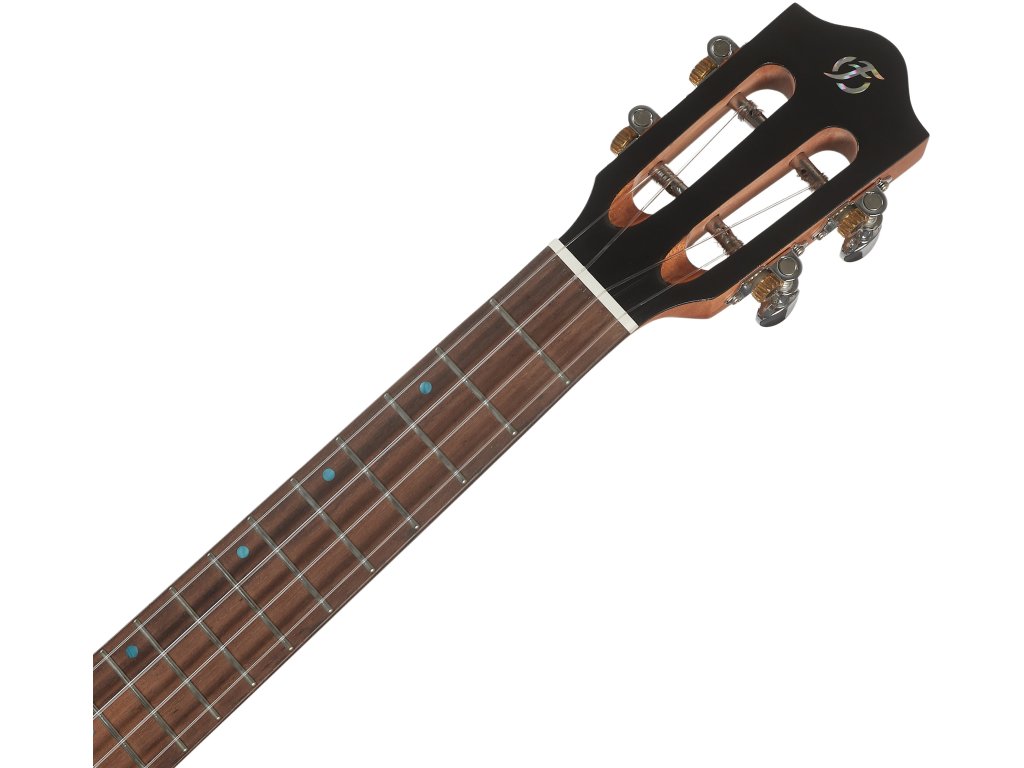 Tenorové akustické ukulele IRIS TINTA TENOR TDB slovinské značky Flight je nástroj s celomasivní konstrukcí zhotovenou z masivu mahagonu. Mahagonové tělo poskytuje nástroji krásně vřelý zvuk. Ukulele dále nabízí krk ze dřeva okoumé, palisandrový hmatník a kobylku, sedlový a nultý pražec z kosti a řadu zajímavých designových prvků.