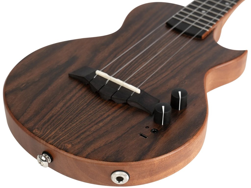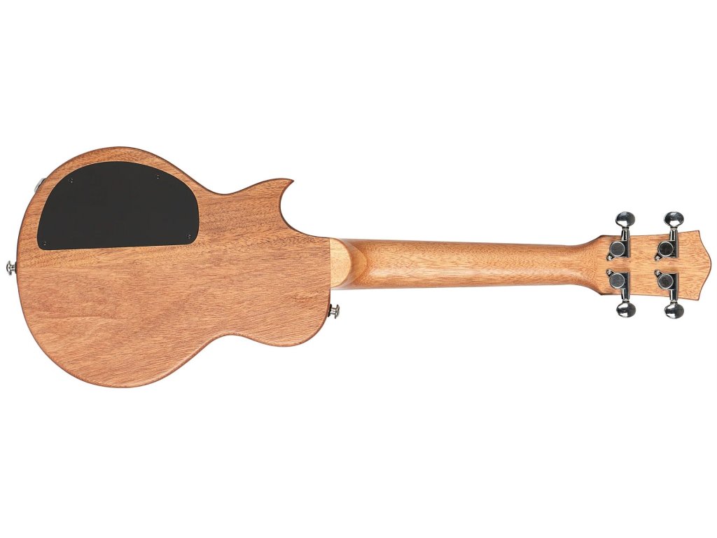 Elegantní křivky těla z okoumé v single-cut designu zdobí top z exotického dřeva bocote s výraznou kresbou. Ke krku z okoumé je přilepen hmatník z moderního kompozitního materiálu osazený osmnácti pražci. Struny jsou uchyceny ve firemních die-cast mechanikách a kobylce z kompozitu. Ukulele je dodáváno v polstrovaném obalu (padded gig bag).