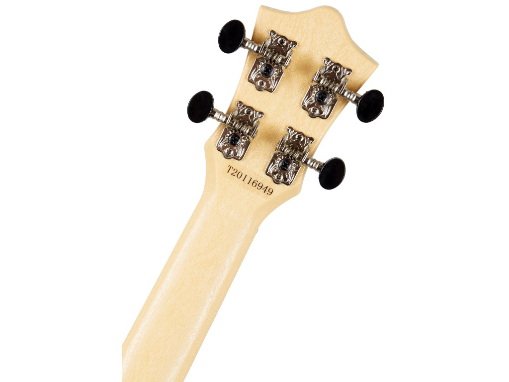 Korpus tohoto koncertního ukulele je složen z plastového těla a přední desky z laminovaného ořechu. Širší klenutá zadní deska ukulele umožňuje nástroji rezonovat jasnějším hlasitějším zvukem, než nabízí standardní koncertní modely. Krk i hmatník jsou rovněž zhotoveny z plastového materiálu ABS, kdy design krku imituje strukturu dřeva. Struny jsou přes plastový nultý a sedlový pražec ukotveny v ladicích mechanikách kytarového typu (Geared) a plastové kobylce. Pěkné zpracování podtrhuje stylové sladění ořechového topu a dýhy na hlavici a rozeta v podobě laserových rytin.