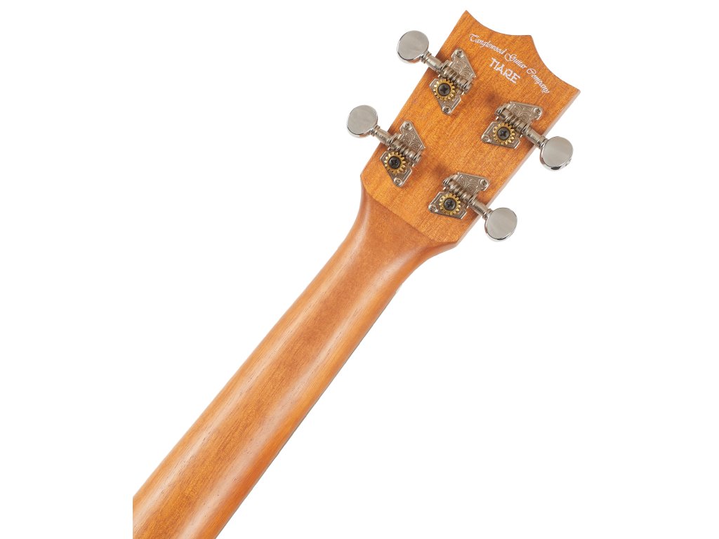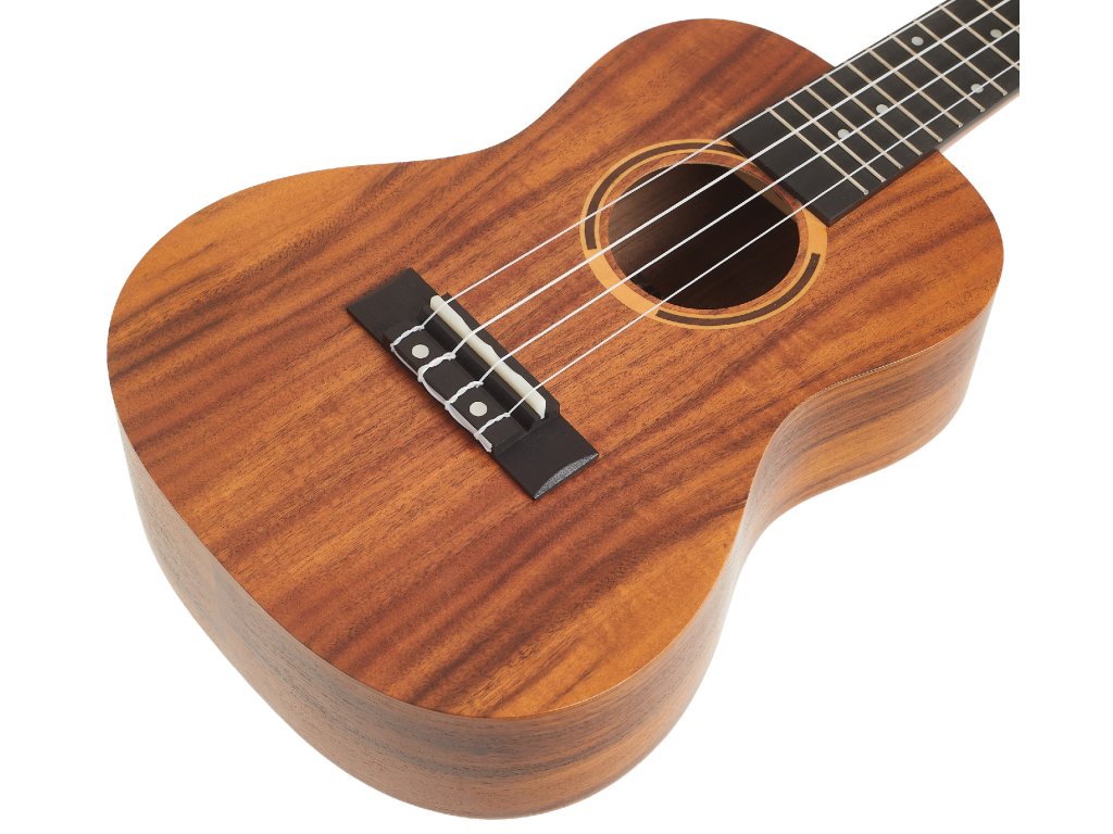 Struny jsou uchyceny v chromovaných ladicích mechanikách kytarového typu a kobylce z kompozitu. Pěkné zpracování podtrhuje rozeta složená z javorových a mahagonových prstenců. Ukulele je dodáváno v obalu (gig bag).