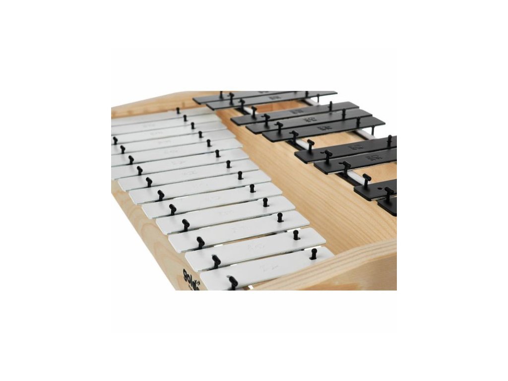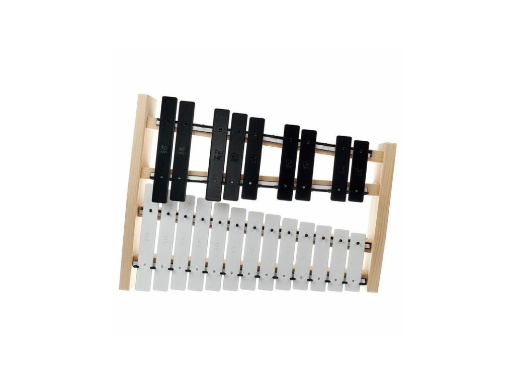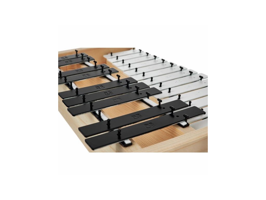 Chromatický metalofon s 22 černými a bílými ocelovými kameny a tónovým rozsahem c2 - a3. Ozvučná skříň je vyrobena ze smrkového dřeva. Součástí jsou i 2 dřevěné paličky.